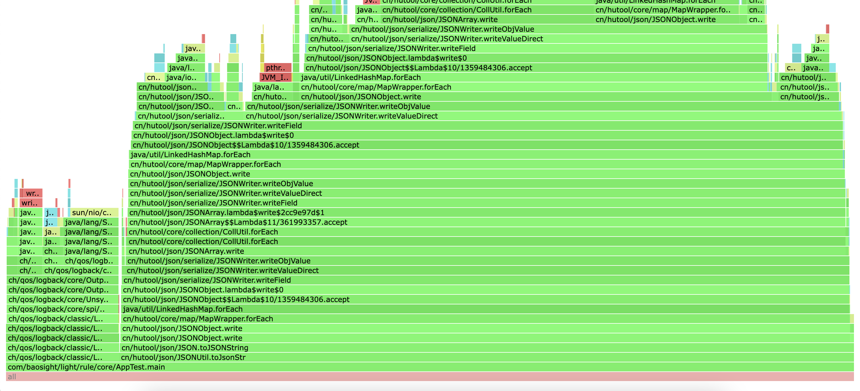 可以看到hutool 的 json 工具耗时是最长的,然后就可以排查业务逻辑慢的具体原因。
